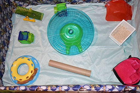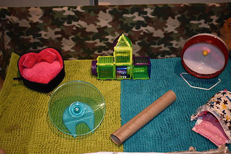 A great way to give your hamster exercise, and provide extra bonding time, is to accommodate for ample play-time outside of their living habitat, daily. We suggest setting up a play-pen area, with lots of tunnels, hiddy houses, and other enrichment items, and let the fun begin. Remember, to always supervise their out-of-cage time, so everyone is always safe, and accounted for.
