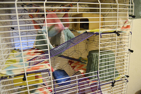 The cage floor (or levels) themselves, although mostly made out of wire, should NEVER be left as is. Bare wire floors are responsible for feet swelling, redness, sores, ulcerations, bleeding, bumble foot (together with unkempt cage cleaning), and other hind foot relates issues. Because hamsters spend a good portion of the time when the whole body weight is carried by their hind feet (example- while eating), it is vital to make the cage floor and levels safe for them to use long term! If your cage (or the cage you are yet to get) has bare wire floors, add plastic covers (sometimes available to buy from the same company), cardboard cut to size, or another material that you can easily change up, disinfect and reuse. Or, better yet, get a cage that already comes equipped with plastic covered levels!