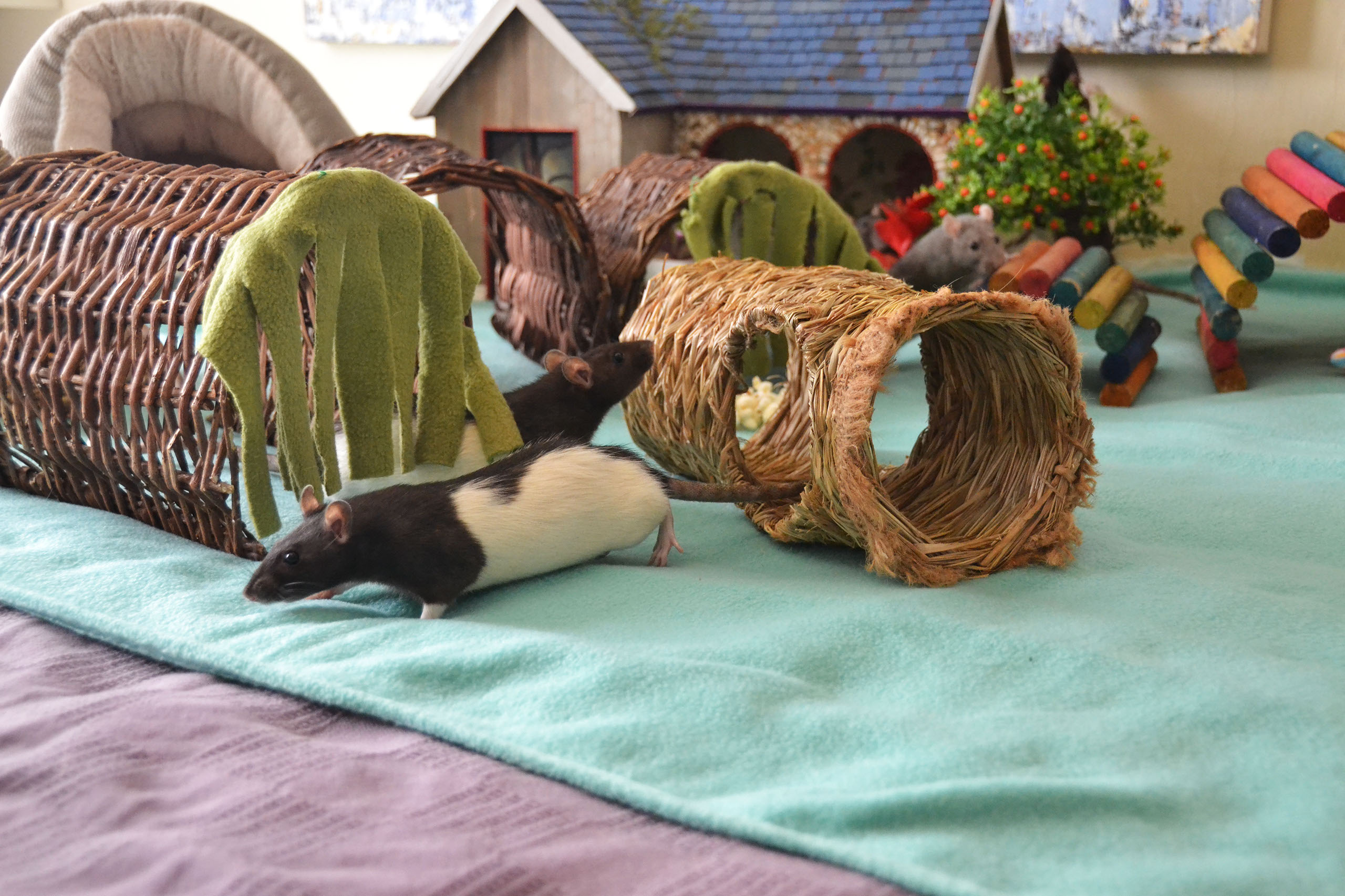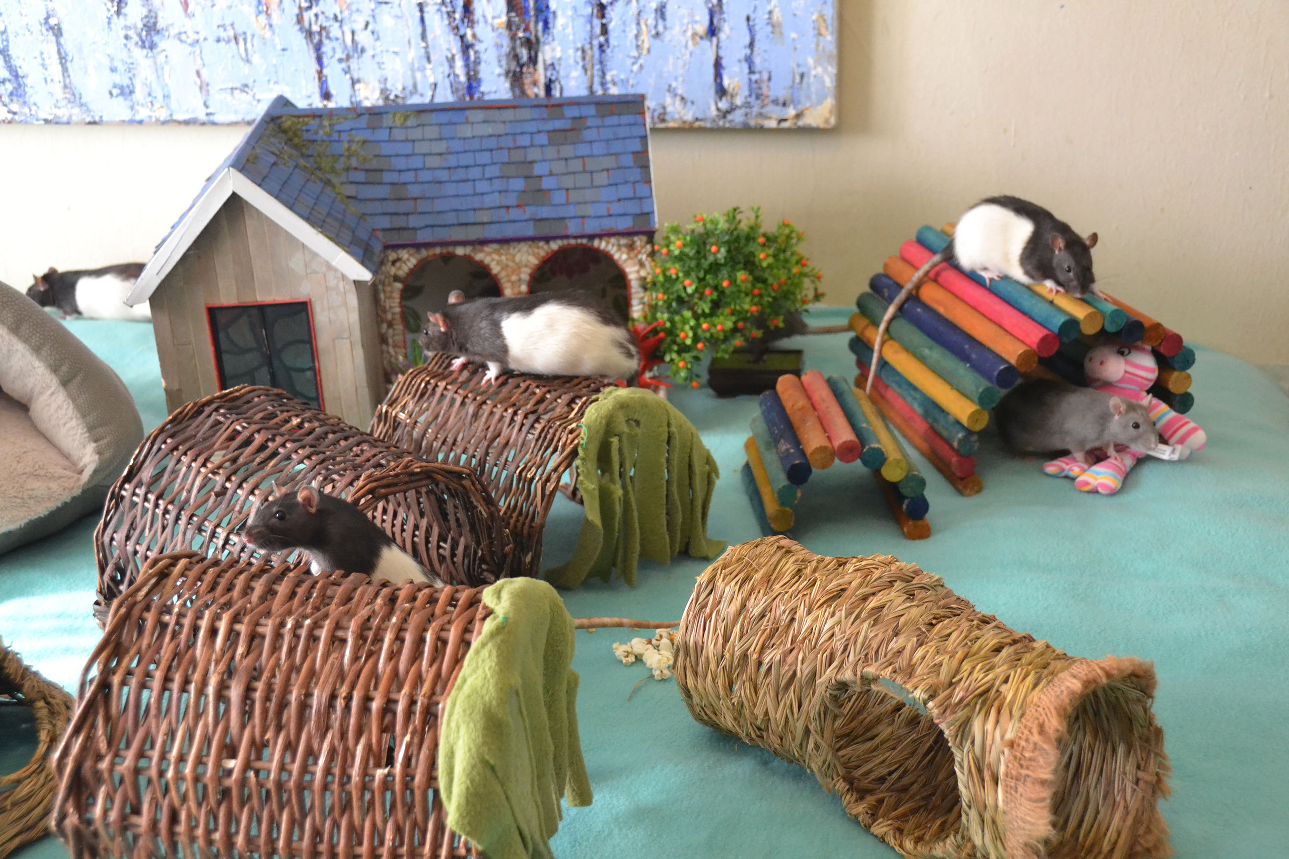 Whether you choose a permanent ratty play room, or a removable one, it is important to keep in mind that rats are among the most intelligent animals around, and love mental stimulation. Please, keep it safe, and add more and more to the enclosure as time goes by, read a book or two on rat training and try it yourself, build an obstacle course, and mix it up often allowing them to always explore new things. Most importantly, always use positive reinforcement, be patient, respectful, and loving.