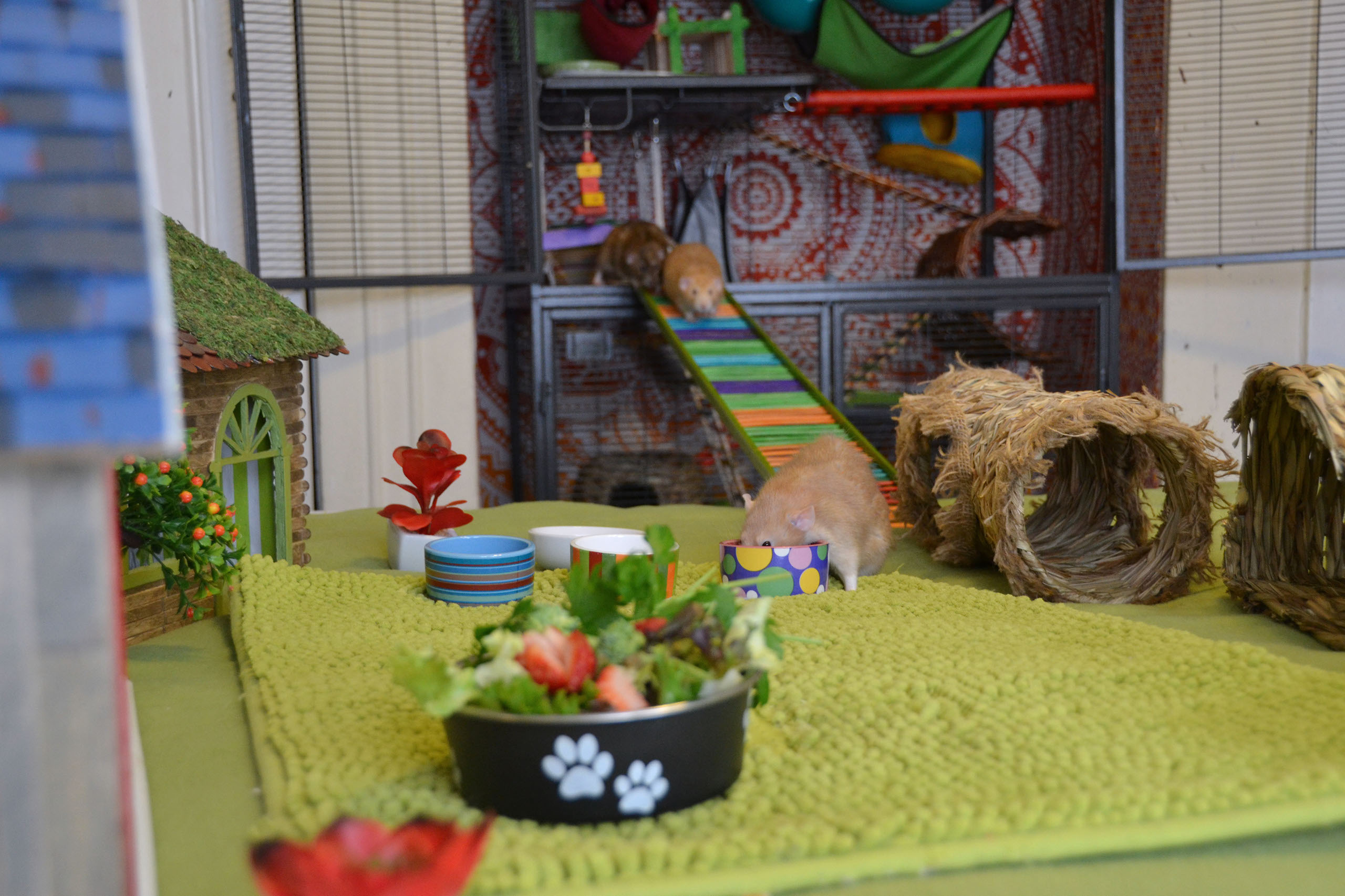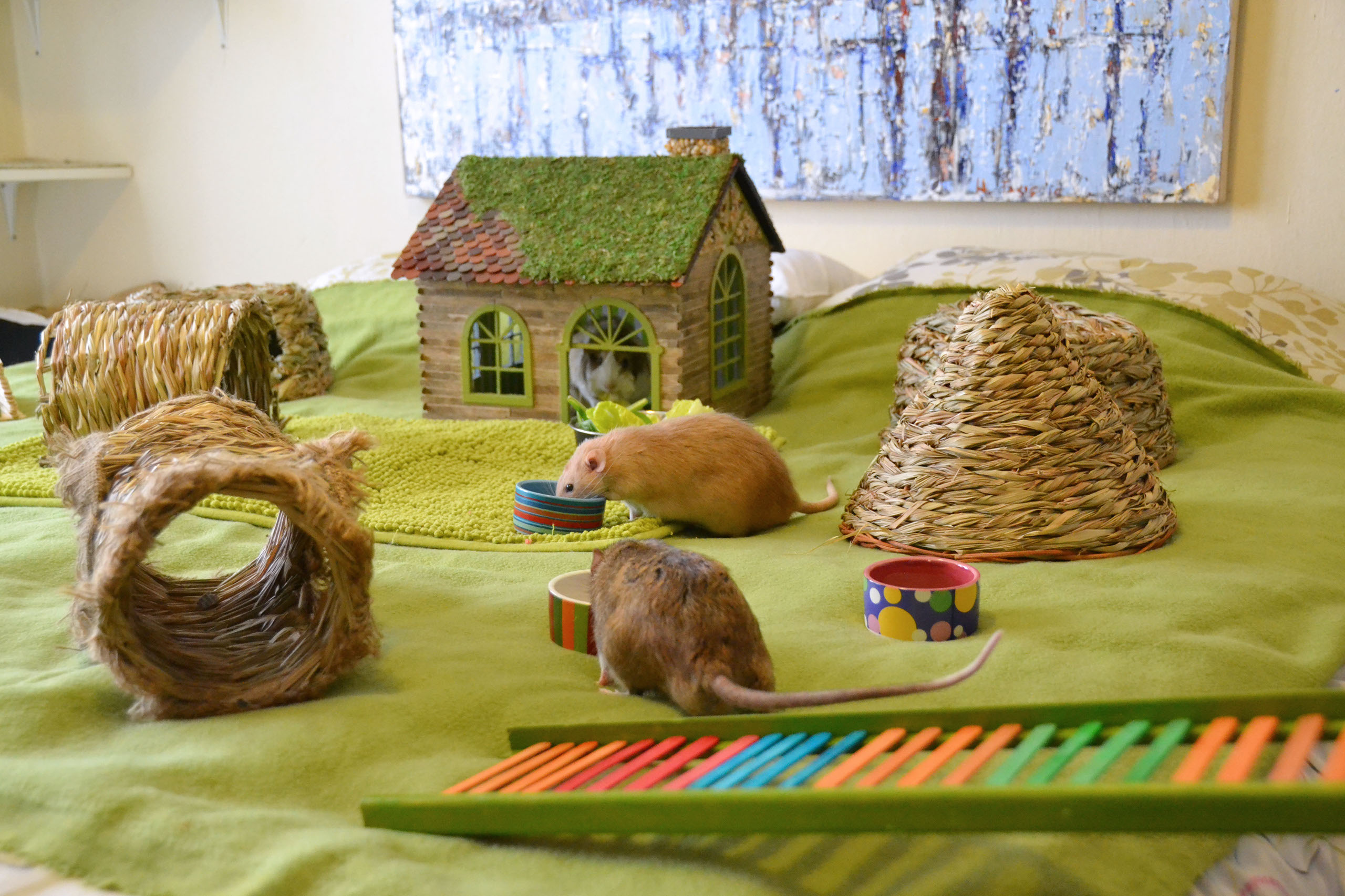 Here you can see even more of ECC foster homes' rat enclosures and play-pens, so you can get a good idea of the space needed for both inside and outside-of-cage time.