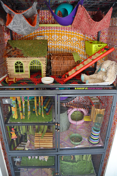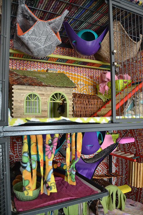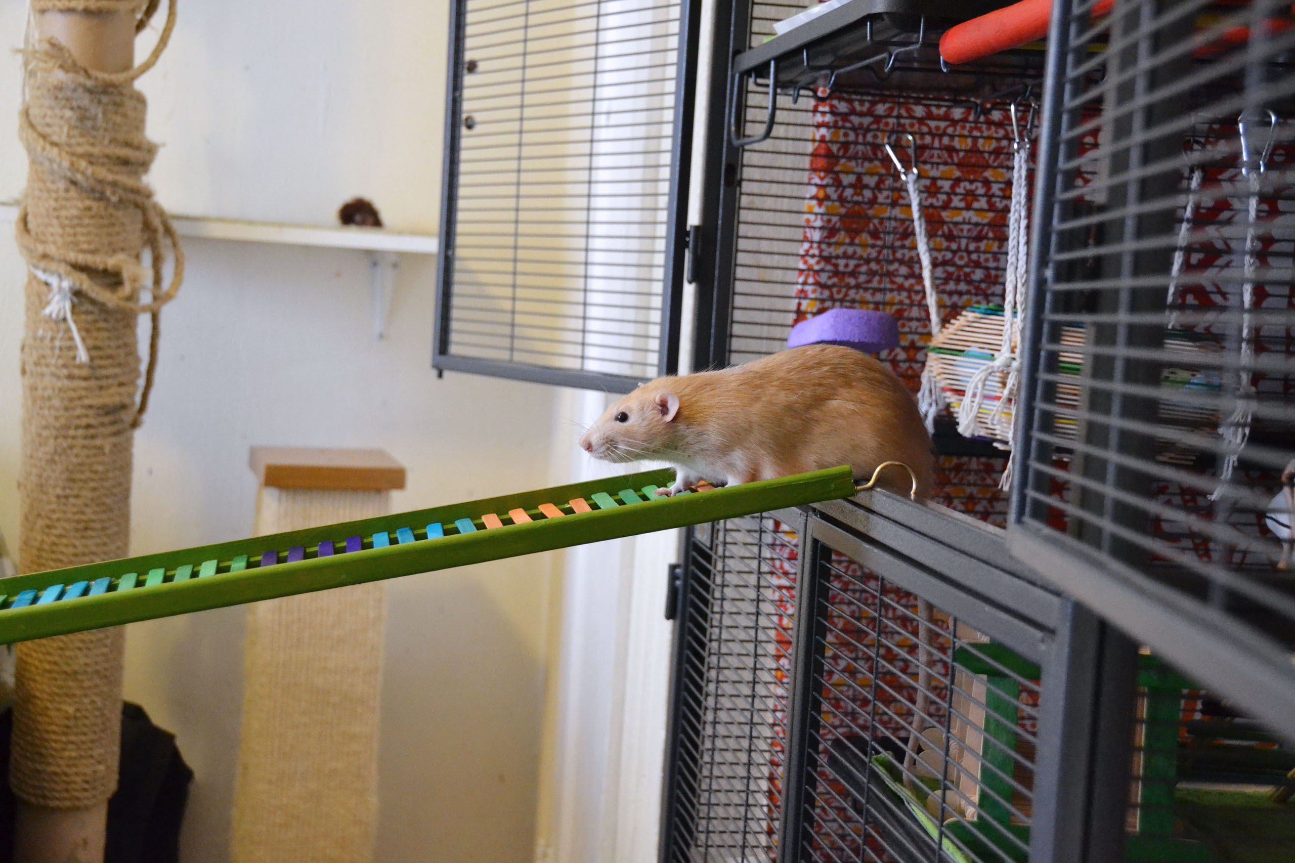 Here you can see some pictures of our current rat enclosures (as mentioned above, we prefer using Critter nation cages, and can not recommend them enough!) and the cage hideouts and enrichment, so you can get a good idea of the space needed for both inside and outside-of-cage time.