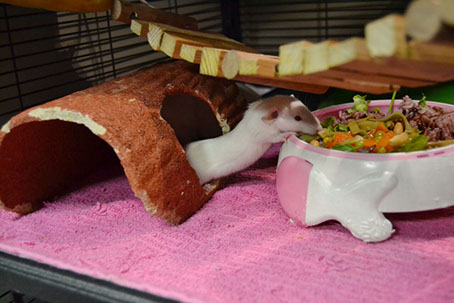 If our adopters already have companion rats, and are adopting others, at ECC we will provide for a neutral play-pen, introduction area, with plenty of enrichment and diverse ratty safe foods. Our adoption coordinators, and adopters, can see first hand how the rats get along, and adoption can be made based on whom the resident rat(s) best get along with. Our adoption coordinators can also assist the adopters with instructions, and information on what to expect onward, and how to best carry out needed post-adoption separation, as well as succeeding intros in adopter's home.