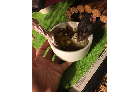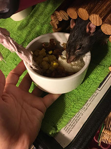 Also have ready some mashed up food (such as Gerber Rice cereal, or whatever your rats' favorite) for syringe feeding, and ask your veterinary technician to show you how to give oral medication. You are likely to be sent home with pain medication to give 3-4 days after surgery. You companion rat should be eating and drinking within 12-24 hours post surgery, but may need help starting up.